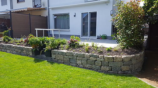 ...eine tolle Natursteinmauer mit Staudenmischbepflanzung.